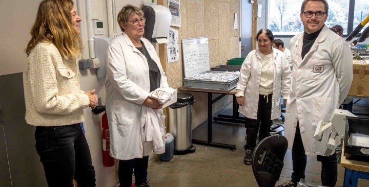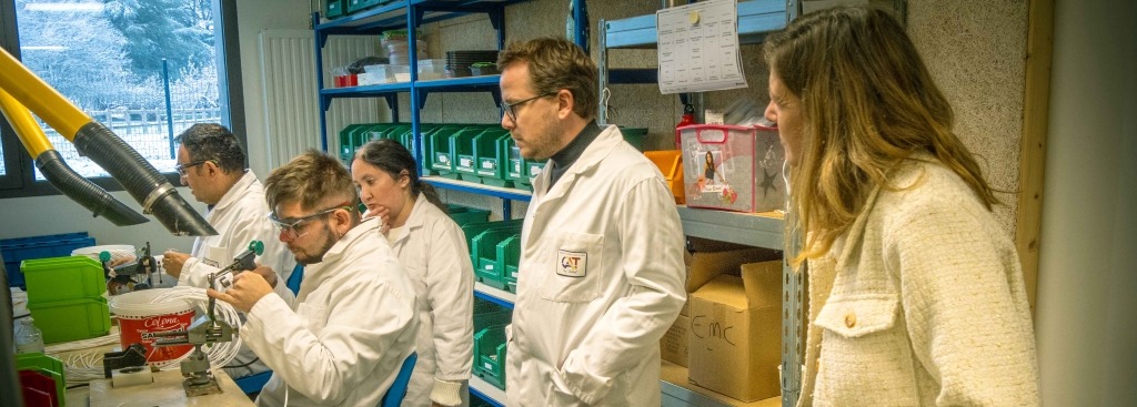 En invité : Jérôme Charasse, directeur de la Direction départementale de l’emploi, du travail et des solidarités (DDETS) du Puy-de-Dôme. Accueilli par Laurence Seux, directrice de l’ESAT, et Antoine Blais, manager de proximité, il a été pris en main par une travailleuse de l’atelier câblerie. Ensemble, ils ont échangé sur le métier, les exigences techniques, et ont fabriqué une sonde médicale.